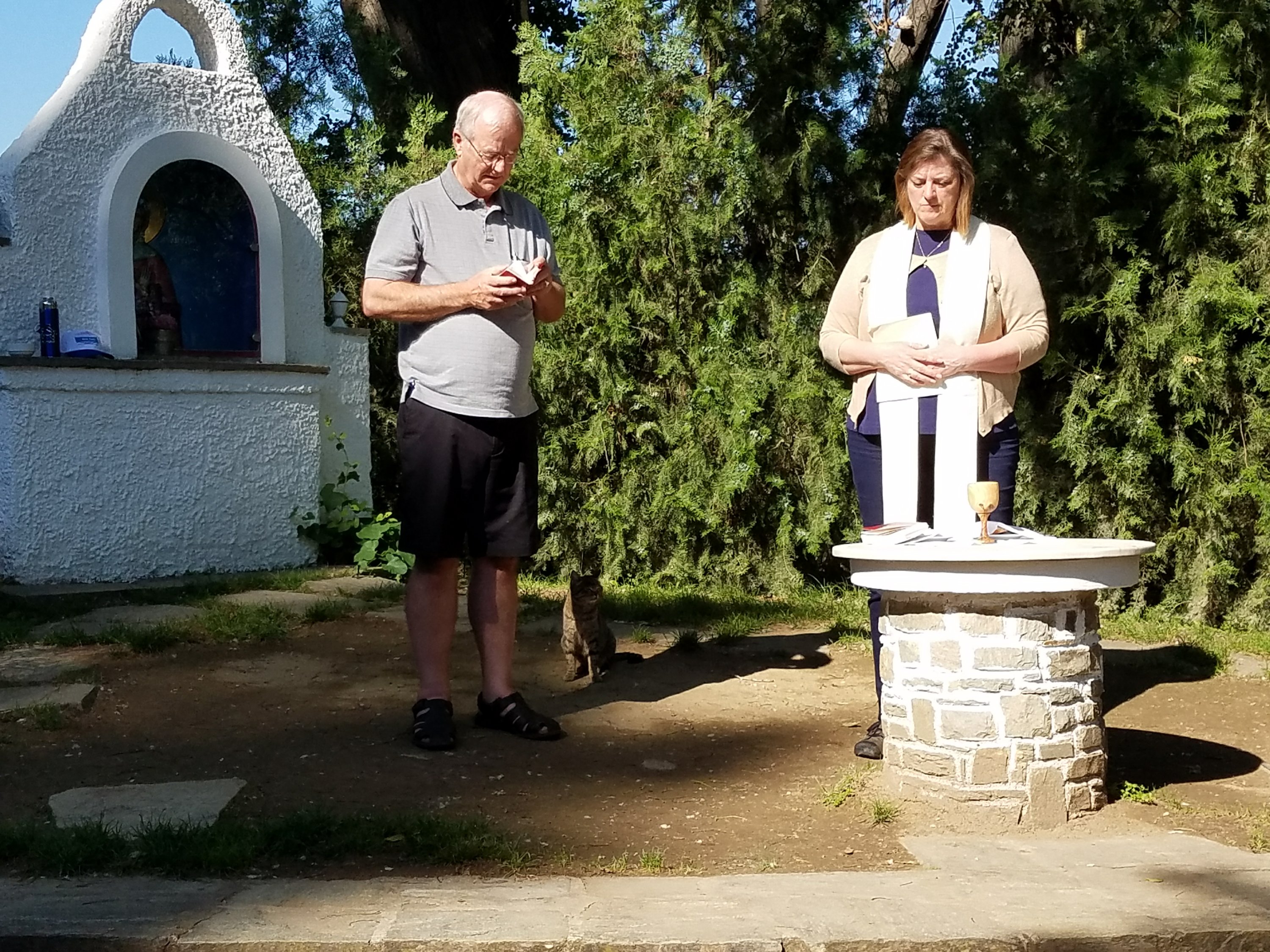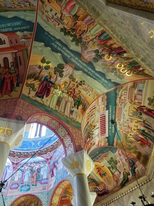 I give thanks for the orthodox monastery that has been placed next to this sight and for the gorgeous frescoes that line the ceiling there. It was powerful to go from Eucharist (celebrated by newly ordained Mother Michele)