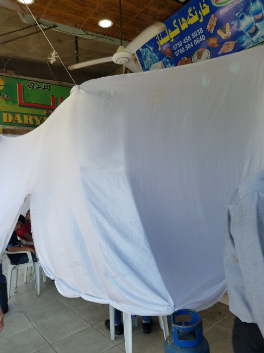 There are those, however, who DO test the limits. Most restaurants here do not open until after sundown. Yet, there are a few, like the one in the photo above, who are open but have sheets hung outside so that food and drink cannot be seen. We have been to a few of these places to get food to take home wth us in the afternoons for our late day lunch. But we NEVER, NEVER, NEVER eat in pubic.