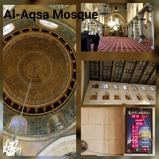 Next door is the Al-Aqsa Mosque. It is used throughout the day for prayer. On the board, the only time listed that is not used for prayer is sunrise (today it was 6:37AM). Most days, the Al-Aqsa is the main building for prayer, with the women in a side area. On busy days, the men pray in Al Aqsa and the women in the Dome.