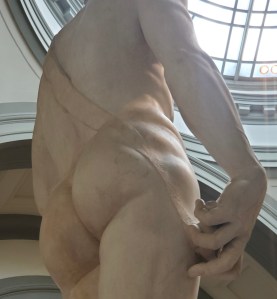 Which leads me to this secondary thought: sometimes we think we know something SO WELL and yet the truth is we don’t fully. Two years ago, while in Italy with my daughter, we were sure to include Florence as a destination in order to see Michaelangelo’s masterpiece. For years I’d heard my mother (and others) talk about and marvel at Michaelangelo’s David. Michaelangelo’s sculpted artistry is so iconic that even as I type these words, it presents itself in my mind’s eye. Yet, the icon is usually presented only as its frontal view.